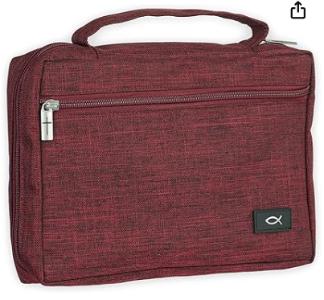 Medium Bible Cover – Canvas Burgundy with Fish Emblem