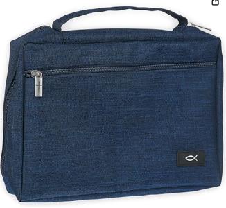Medium Bible Cover – Canvas Navy Blue with Fish Emblem